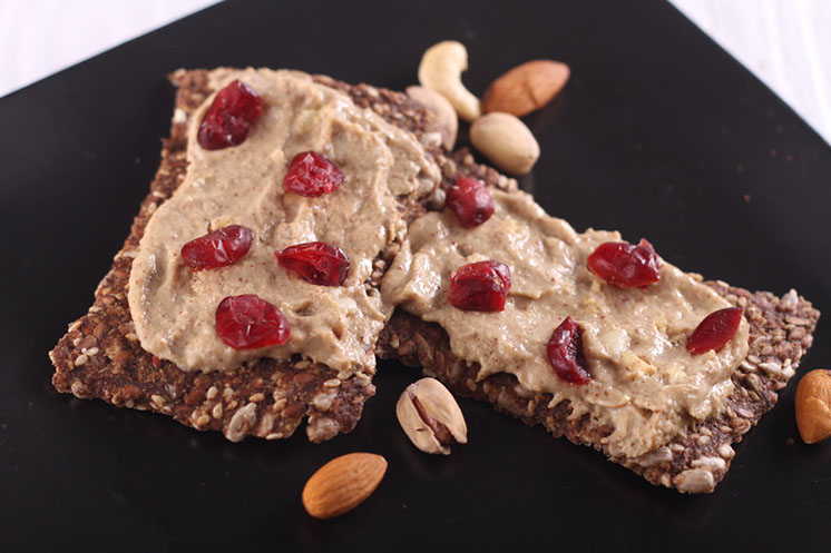 Wrzucić wszystkie składniki do food-processor i mieszać do otrzymania konsystencji kremowej. Jeżeli chce się uzyskać bardziej kremową pastę, można dodać wody. Pastą smarujemy dowolny smak Habżyków lub przekładamy ją do miseczki i używamy jako słodkiego dipu. Teraz możemy rozkoszować się wybornym smakiem Habżyków w wersji na słodko. Zdrowa przekąska, gdy ma się ochotę na coś słodkiego! Najlepiej z tą pastą smakują Habżyki słonecznikowo-lniane.